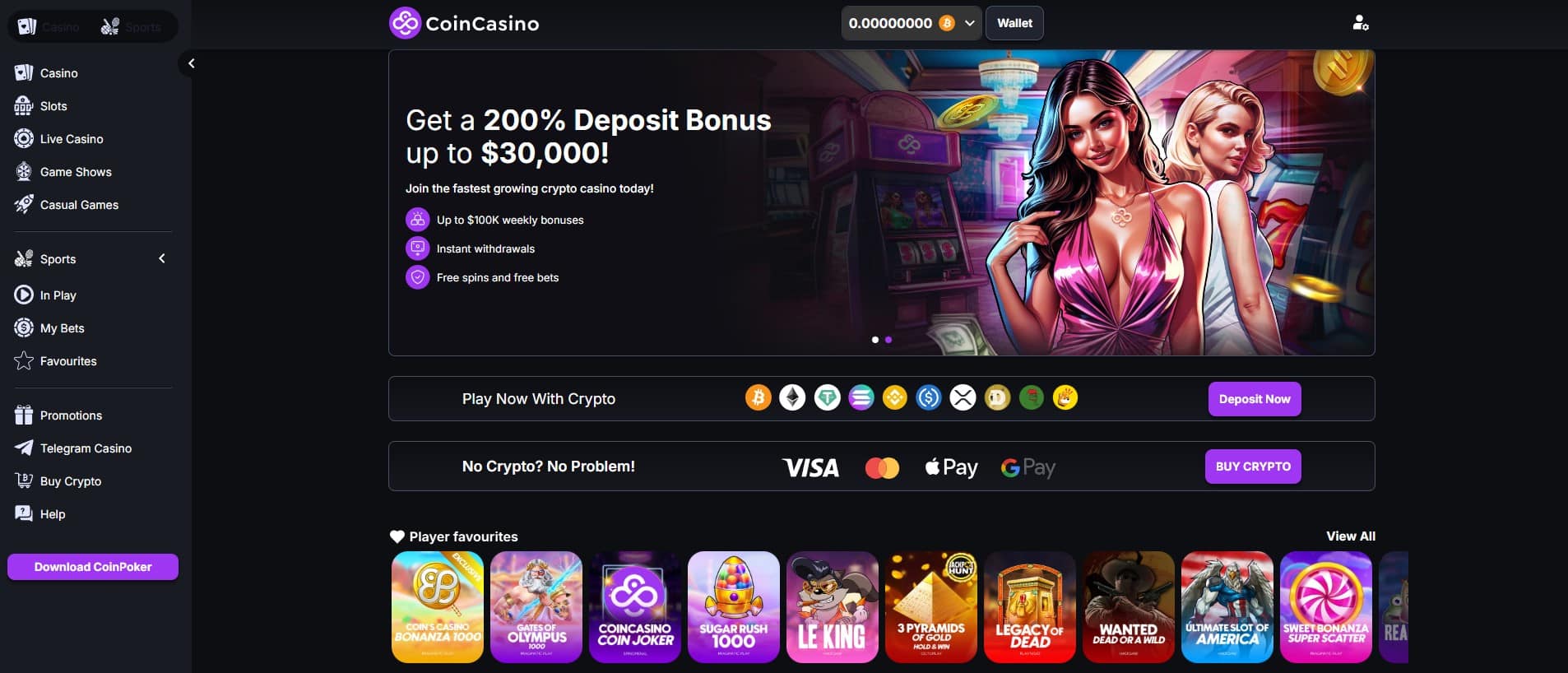 • Play on a fully anonymous platform with instant crypto withdrawals